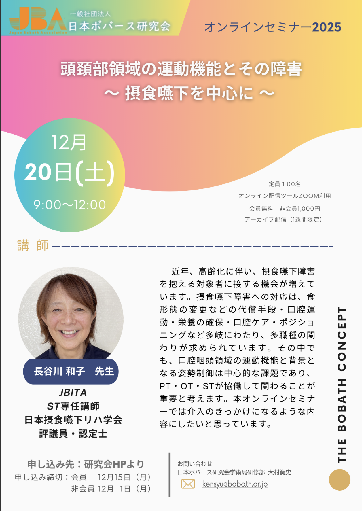 日本ボバース研究会学術局主催 オンラインセミナー2025 頭頚部領域の運動機能とその障害~摂食嚥下を中心に~