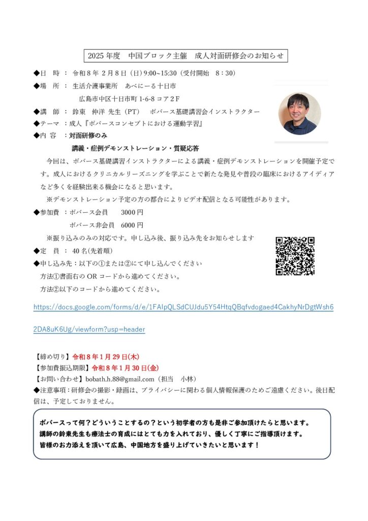 2025年度 中国ブロック主催 成人ボバースアプローチ対面研修会