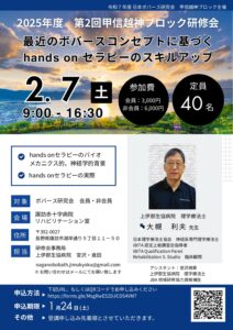 開催日:2026年2月7日(土) 9:00~16:30※受付8:30~ ✑テーマ:最近のボバースコンセプトに基づくhands on セラピーのスキルアップ ✑内容: ・hands onセラピーのバイオメカニクス的、神経学 […]